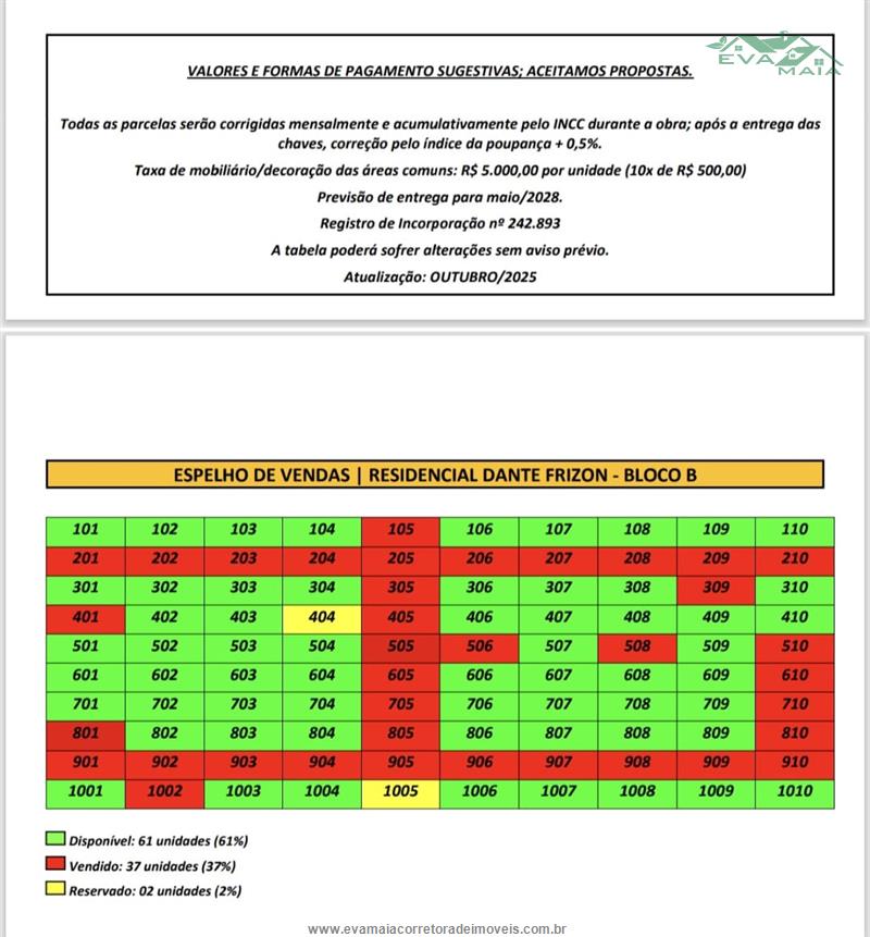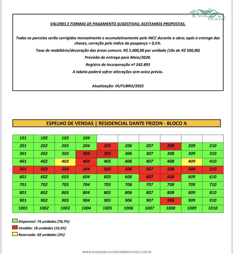 * Obs. o empreendimento com previsão de entrega para MAIO/2028, aproveite e reserve o seu, temos apenas só 74 unidades disponível no bloco-A e 61 no bloco-B.